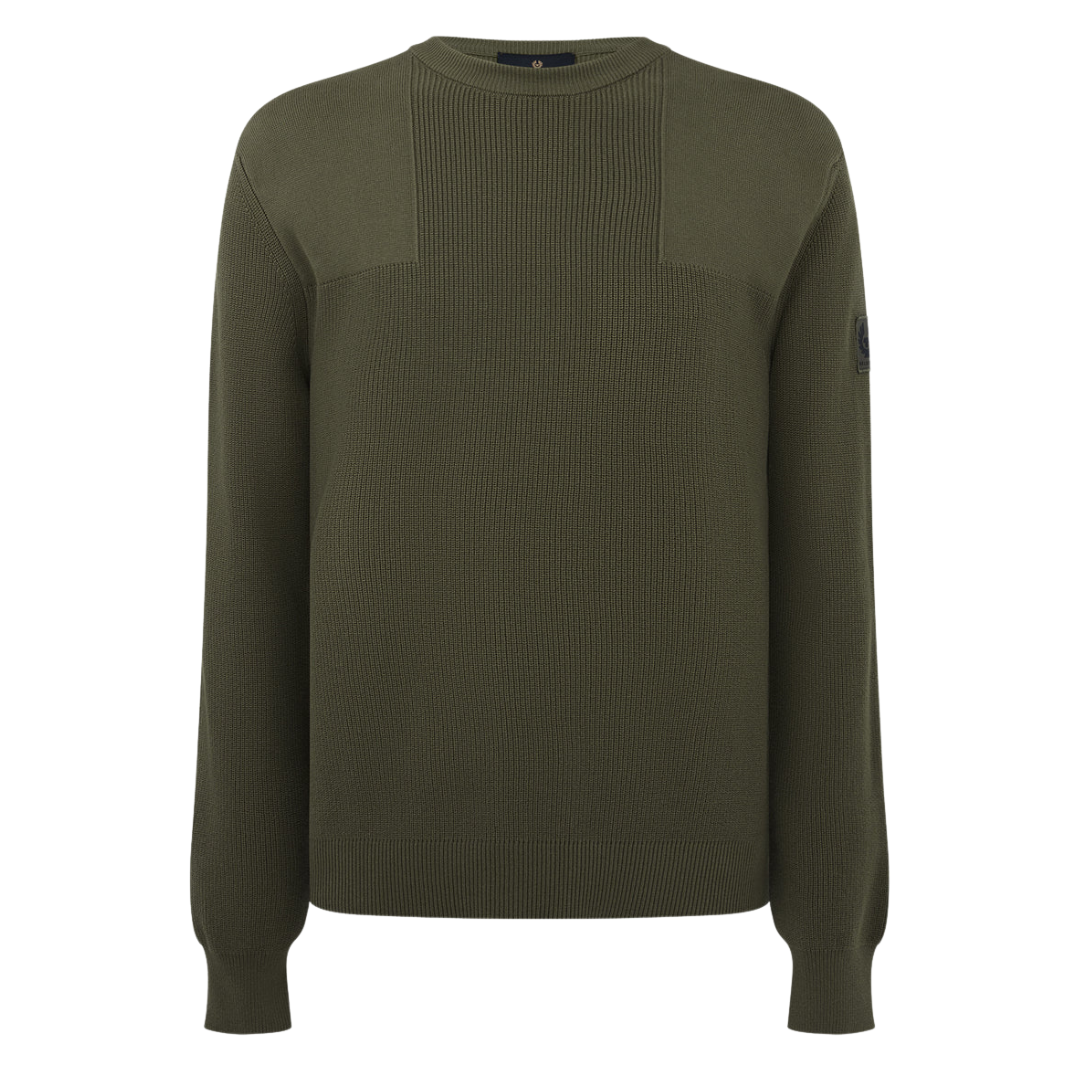 The Belstaff Commander Jumper in True Olive is a versatile wardrobe essential, crafted from 100% cotton for a comfortable and breathable fit. Designed with military-inspired shoulder and elbow panelling, it features a tonal Belstaff patch logo, combining functional details with contemporary style.