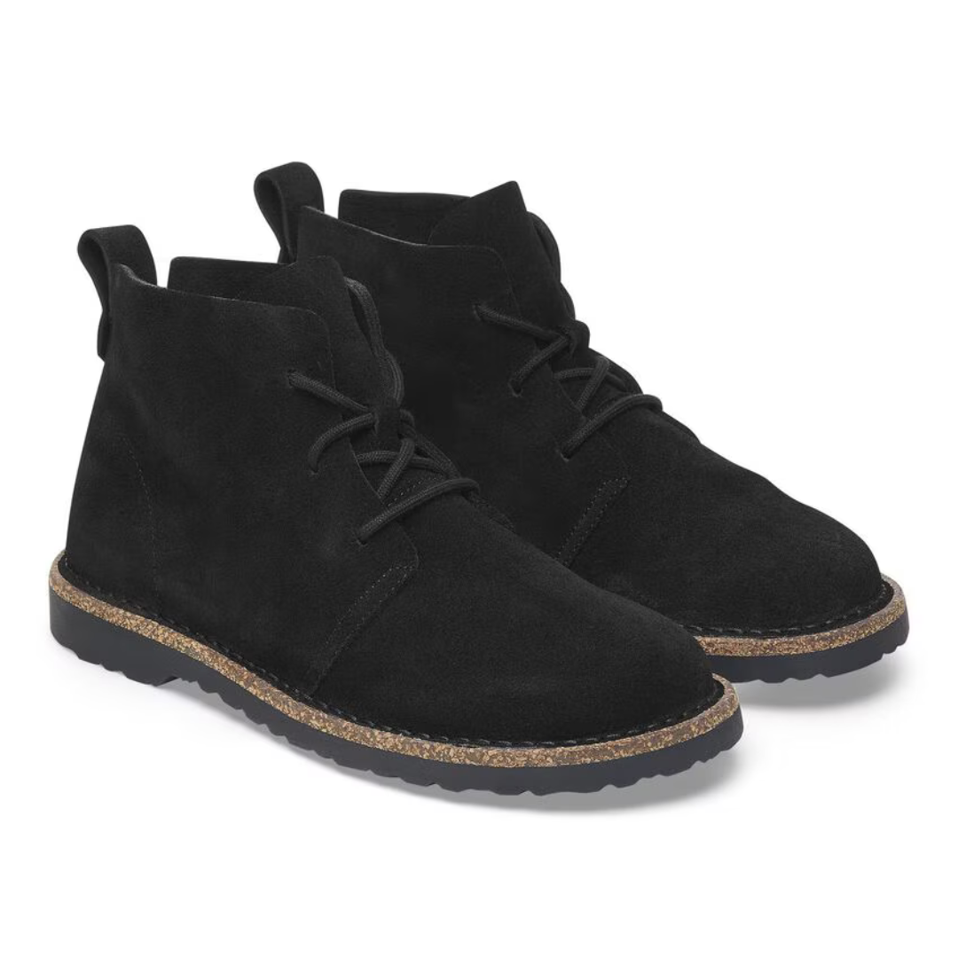 The Birkenstock Uppsala Mid Boots in Black combine sleek suede styling with the brand’s anatomically shaped cork-latex footbed for unmatched comfort. With customizable lacing and a mid-cut silhouette, these boots offer practical support and modern flair for everyday wear.