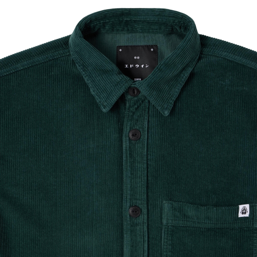 Elevate your layering game with the Edwin Ander Corduroy Shirt in Green, crafted from heavy-weight 8-wale cord fabric that delivers rich texture and rugged finish. Finished with an oversized, relaxed fit, patch chest pocket with subtle branding, and durable 100% cotton make — this shirt blends vintage workwear appeal with modern streetwear versatility.