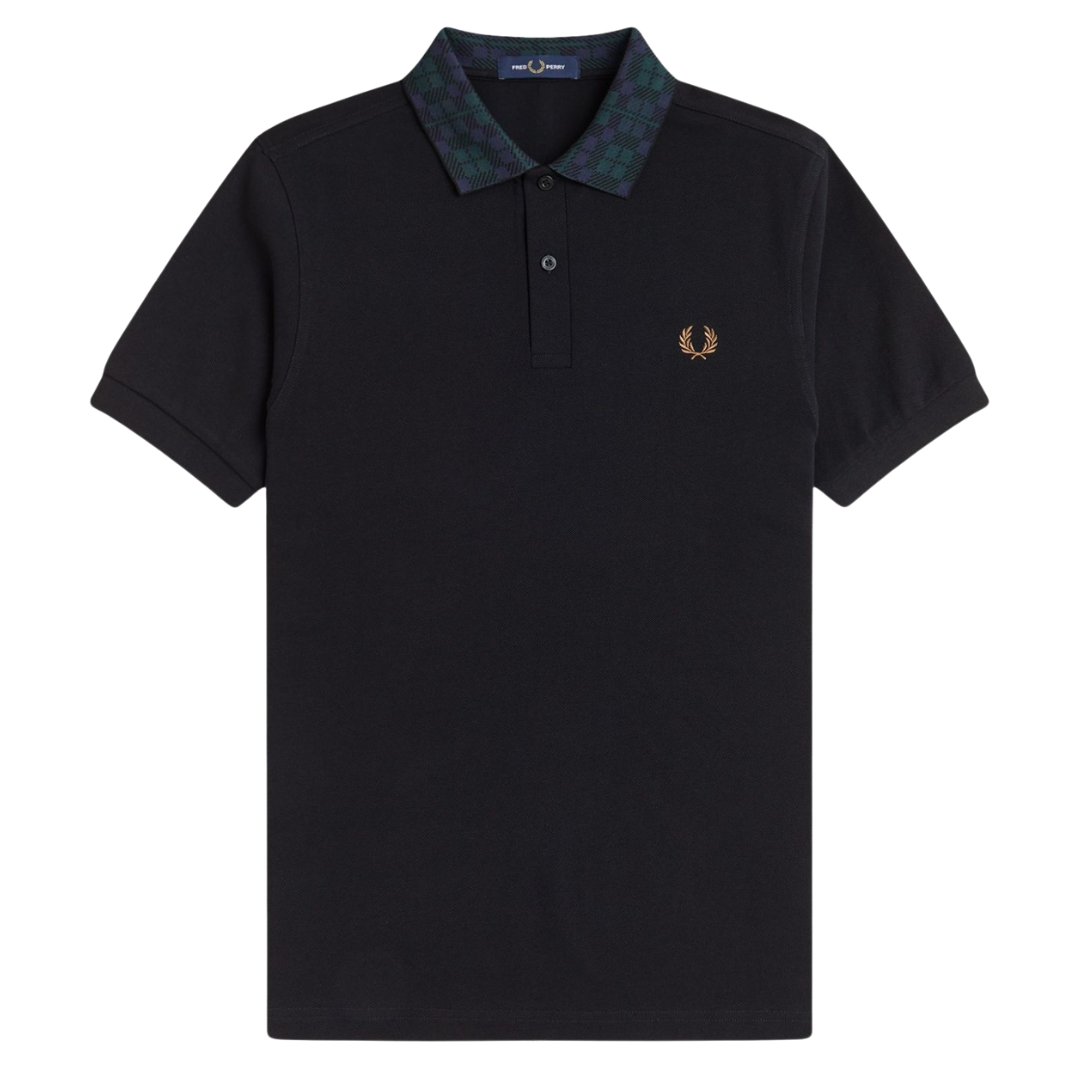 - Fred Perry Blackwatch Tartan Collar Polo Shirt in Black