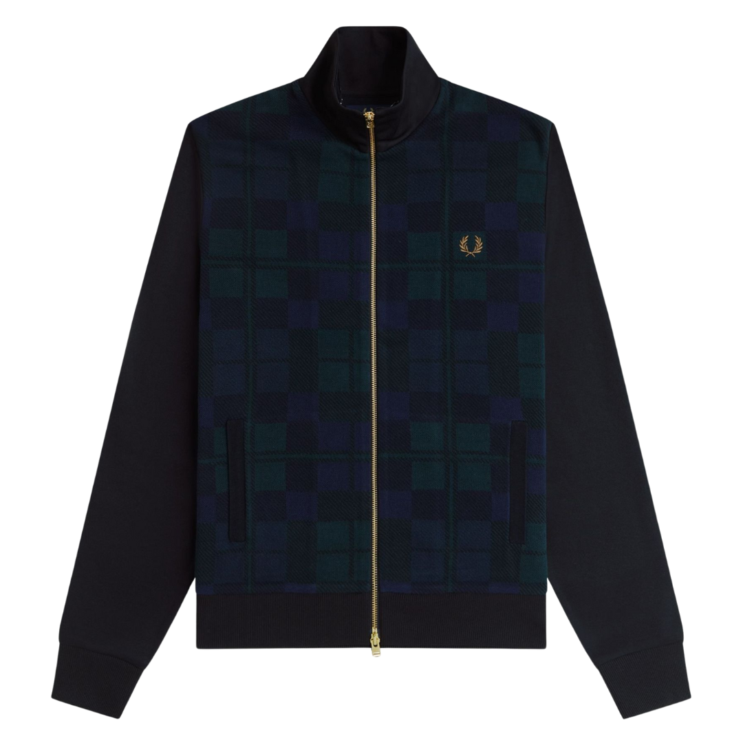 - Checked Knitted Body Track Top with Nylon Sleeves
