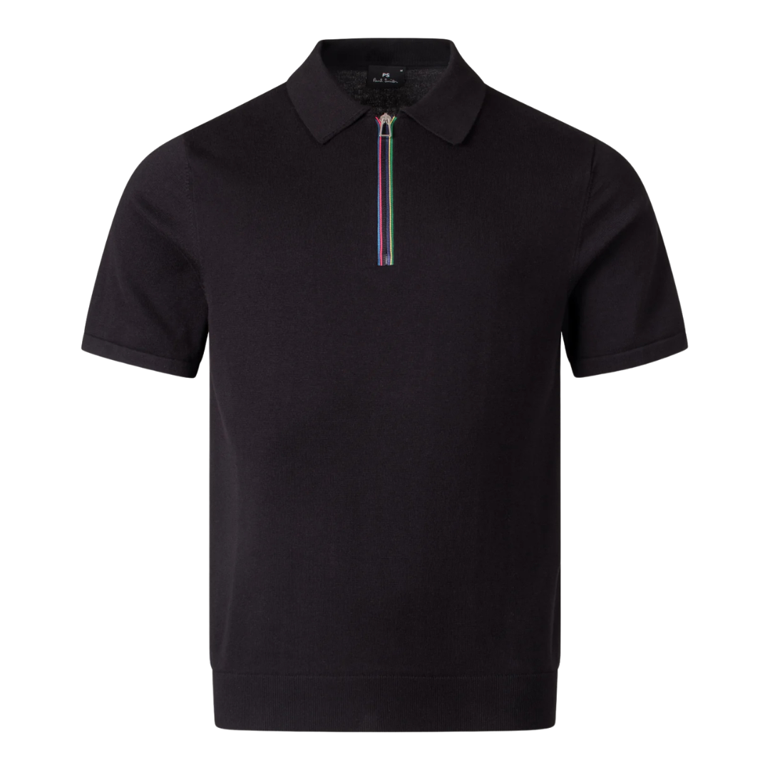 - Paul Smith Zip Up Knitted Polo in Black